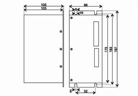 驱动器的外形尺寸为:197x7105x86mm,安装孔距为183mm。既可以卧式也可立式安装,建议采用立式安装。安装时,应使用其紧贴在金属柜上以利于散热。