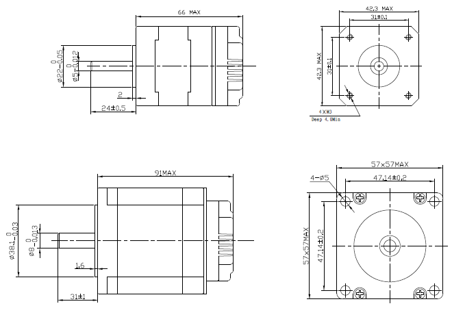 Model | Current | Holding Torque | Phase Resistance | Phase Inductance | Outside Drawing | Matching Stepper Motor Driver | Motor Weight |